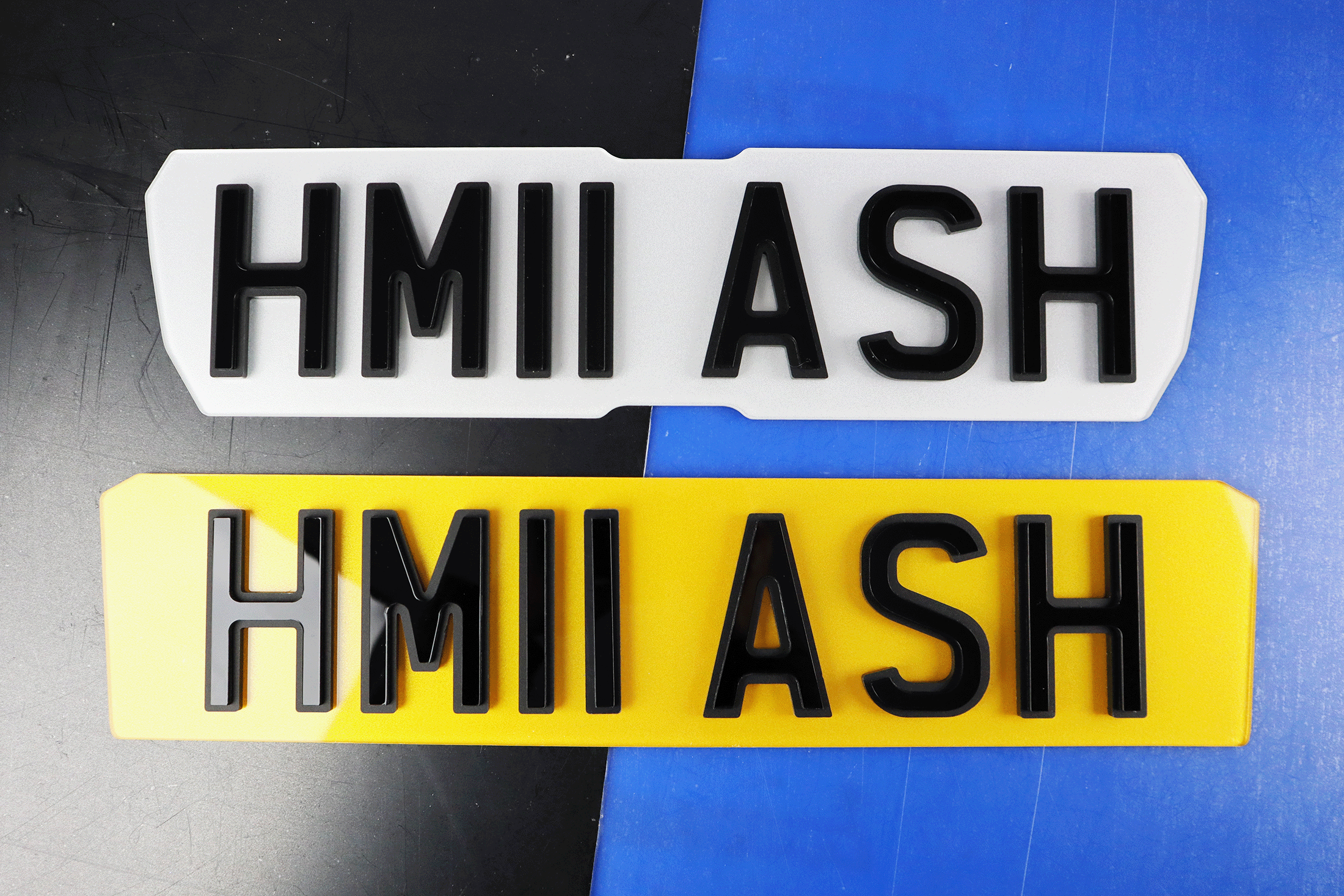 Our exclusive number plate customiser showcases all that you've seen above. Use it to build your exclusive one-of-a-kind bespoke road legal, DVLA approved 4D Number Plates