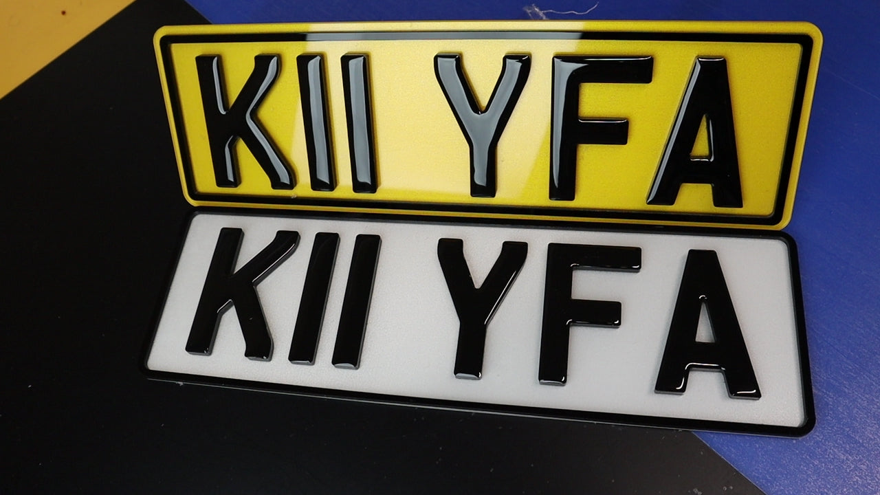 This plate is a true double-layer design. The 5mm acrylic base gives structural strength and a crisp background for the registration. The 7mm gel top layer sits on that base to create a bold, three-dimensional character. The gel’s gloss captures light and improves legibility, while the sturdy acrylic beneath keeps the plate rigid and long lasting.