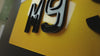 Rear Plate Detail: On the yellow rear plate, the design features raised outer walls with a sunken centre, giving the letters a dipped, tunnelled appearance that subtly catches the light from the sides.