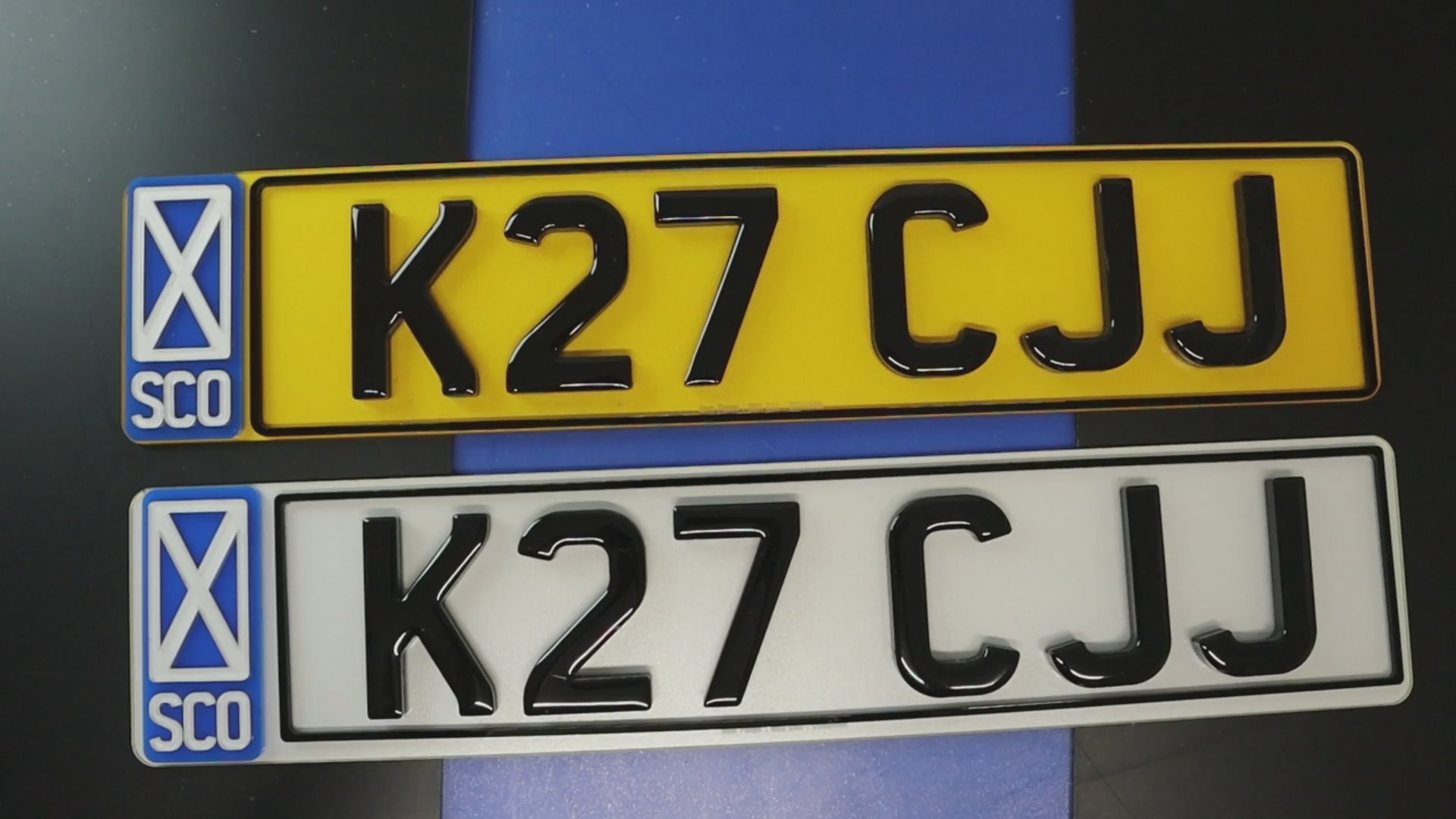 Keywords: 4D number plates, custom license plates, Scottish number plates, Nom Plates UK, personalised plates, gel top letters, 4D borders, UK flag badge, England flag plate, road legal number plates.